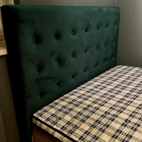 IKEA sengegavl i beige farge med knappdetaljer. Stoffmateriale. Passer til 160 cm dobbeltseng. Selges grunnet plassmangel og flytting.