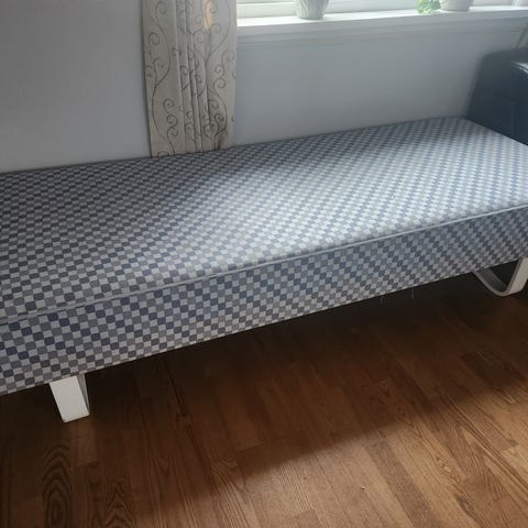 2 stk 80 cm rammemadrasser, satt sammen med en slags klype under så de henger sammen. Selges uten overmadrass. I god stand. God plass til lagring under. Må hentes på Tøyen mellom 2. og 8. Februar.
