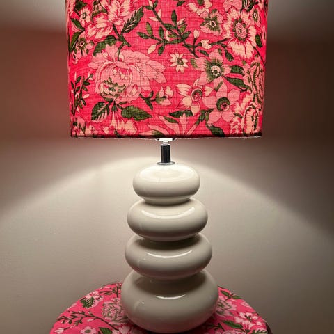 Stor keramikklampe med Marimekko skjerm