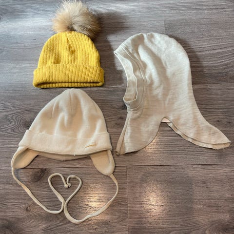 •Hvit lue fra H&M, str 62/68. Fleece på innsiden.