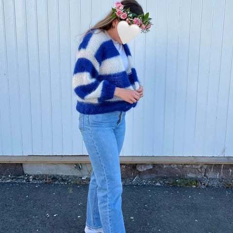 Selger Sweater no.14 v-neck av My Favourite Things Knitwear. Den er strikket i en tråd alpakka sammen med to tråder håndfarget mohair, som gir et myk plagg 🦙 Genseren er strikket i str 2.