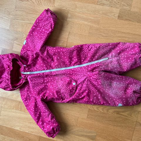 Godt brukt vinterdress (se bilder av slitasje). God og varm med mye bruk igjen tross slitasjen. Strikkene til skoa er helt fine.