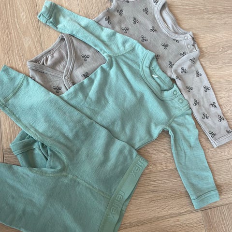 Body fra Newbie str.44, bukse fra Lindex str. 44 og genser fra H&M str. 50.