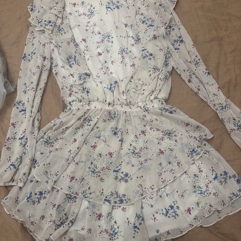 2NDDAY Sommerkjole i størrelse XL, beige farge og laget av lin. Kjolen har løs passform med volanger og snøring i midjen. Egnet for kvinner. Ny kostet 1300