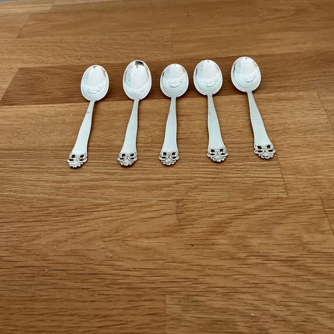Ikke pusset. Sjekket hos verdihuset at det er sølvplett og ikke sølv. Sukkerskål, fløtemugge, liten mugge fra theatercafeen og eggeglass. Alt er gammelt etter min mormor.