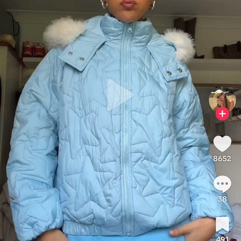 Den har avtagbar hette, og lukkes med trykknapper.