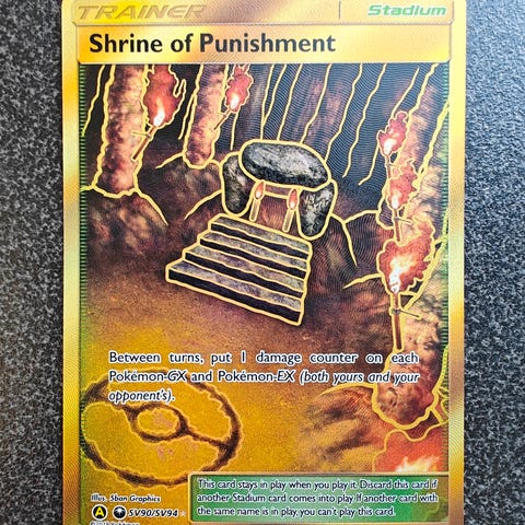 Et Secret Rare / Full Art-kort med sterk rainbow-holo og tydelig tekstur – et skikkelig lekkert samlerkort.