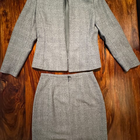Rils blazer i størrelse 38 for dame. Jakken er laget av lin og har et svart mønster. Den har glidelås og er foret med silke på innsiden. Den har også små skulderputer som gir en fin silhuett.