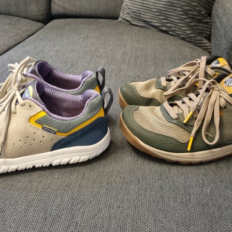 Tursko fra barfotsko-merket Groundies. Skoene har en bred tåboks og fleksibel såle. Jeg kjøpte feil størrelse, så disse ble kun brukt til jeg fikk riktig. De er veldig pent brukt og burde hatt en runde med en klut, men fremstår ellers som nye.