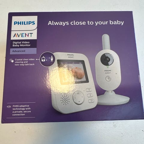 Maxi cosi baby call. Veldig bra kamera og kobles opp til tlf. Helt genial! Men vi fikk to til jul:) brukt en gang….! Kun koblet opp og testet. Nypris 1600.