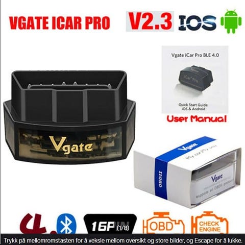 Vgate Scan OBD2 bluetooth feilkodeleser / diagnose-adapter
