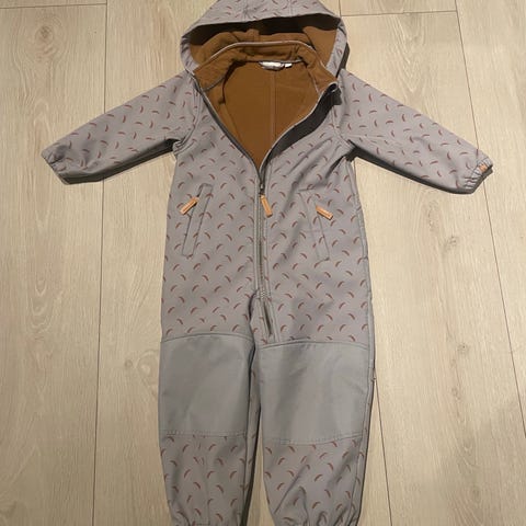 Funksjonell Lily skalldress fra Petite Chérie Atelier med et vind- og vannavstøtende ytterstoff i polyester med teipede sømmer. Den har elastiske fotstropper ved anklene og refleksdetaljer. Skalldressen har borrelås i håndleddene.