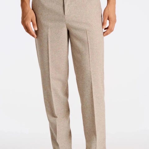 The Model 2 trousers feature a contemporary slightly tapered shape with a medium-rise waist that offers comfort and a flattering silhouette. They feature a single reverse pleat and side tab adjusters, slanted side pockets and two back pockets. Please note the extra fabric along the leg seams for potential alterations, this allows for an extra 5 cm circumference.