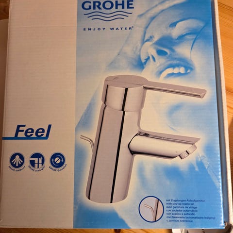 Grohe Minta servantkran i krom. Designet for montering på servant, med enhendels betjening. Passer for baderom og toalett.