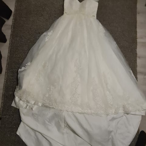 Skreddersydd kjole. Brukt på en som er 168 cm høy og bruker ca s