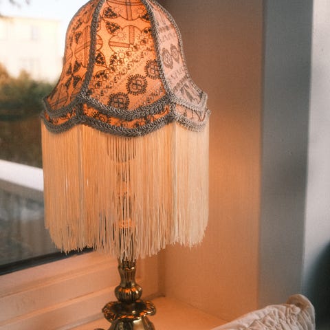 Eldre messinglampe, 97 cm høy..stødig med støpejern i bunn, med Vossmerke..