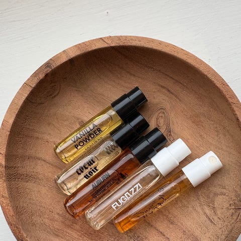 Diverse parfymeprøver og flasker