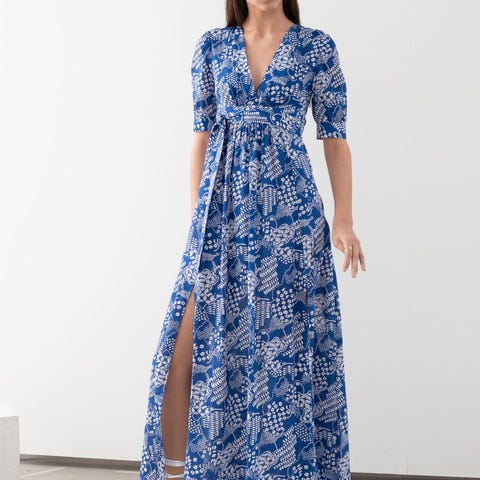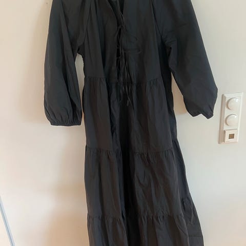 Selger denne nydelige kjolen fra & Other stories som er ganske ny i butikk nå. Den er kun brukt én gang. Den har maxi lengde på meg som er 162 cm, men da midi lengde dersom en er høyere enn meg. Kjolen er tettsittende og glitrende, med splitt i siden og delvis åpen rygg med knyting. Helt nydelig passform. Består av 85% viskose og 15% metallised fibre. Nypris på 1390,-