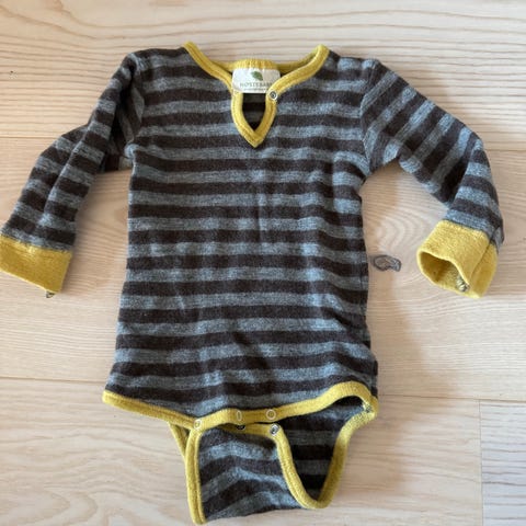 Nøstebarn ull body i nyyyydelig blåfarge. Veldig god stand, men litt løse tråder i skrittet. Dette er kun kosmetisk. Str.68/74