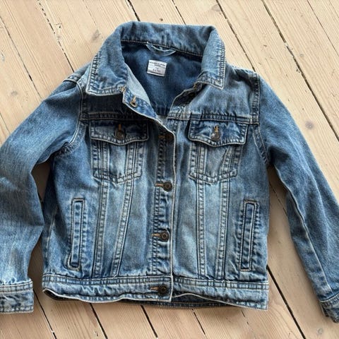 Lindex denimjakke for barn i størrelse 104. Jakken er blå og laget i denimmateriale. Passer for både gutter og jenter.