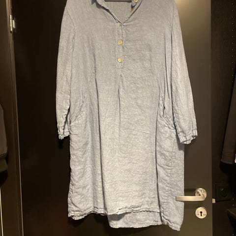 Jumpsuit i lys dongeri str 38. Fin innsving i livet med strikk bak. Stikk lommer og kul passform.