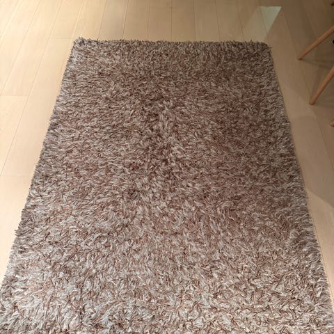 Skeidar teppe i lys farge. Teppe med myk tekstur, egnet for bruk i hjemmet. Som ny brukt veldig lite. Kjøpte for 2000kr selges for 500