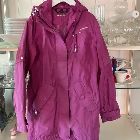 Skogstad jakke i blå farge, størrelse 146, beregnet for jente. Jakken har hette og lukkes med glidelås og knapper. Den er laget i materiale som gir beskyttelse mot vær og vind, med foret innside for ekstra komfort.