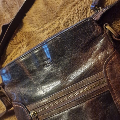 Pent brukt skulderveske fra Adax i brunt skinn.