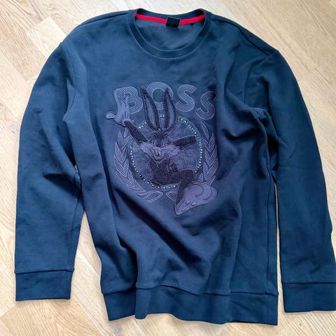 Versace Versus genser i størrelse M, farge grå, laget av bomull. Genseren har rund hals og et trykt design på forsiden. Egnet som hverdagsplagg for menn.