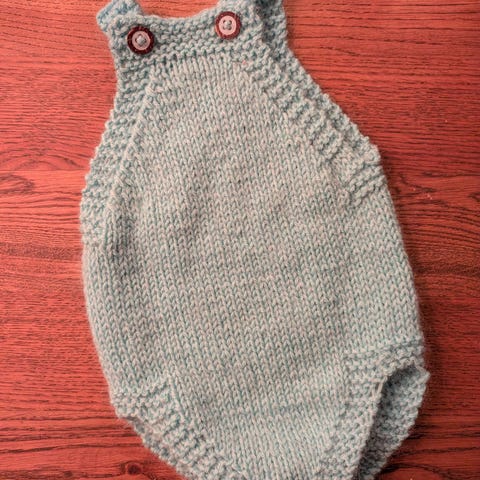 Hjemmestrikket Lillebrorsromper i grå melert garn i str 3-6 mnder.
