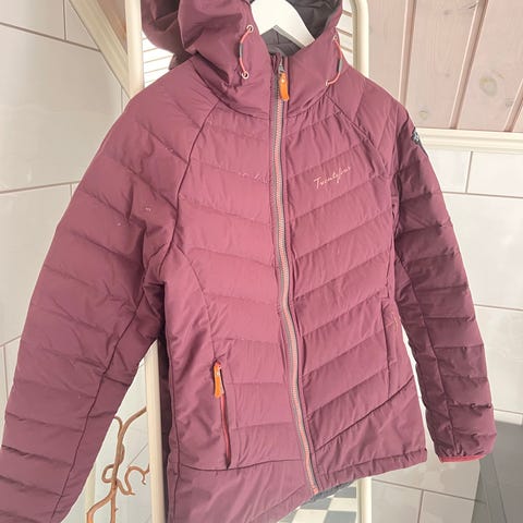 Twentyfour Annet yttertøy i størrelse 34 for kvinner. Jakken er lilla og laget av polyester. Kuldebeskyttende isolasjon. Stramming nede og i hette, glidelås og borrelås i front, borrelåsstramming ved håndledd. Fast hette med borrelåsjustering.