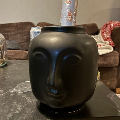 Ansikt vase høyde ca 30 cm ( er i plastikk )