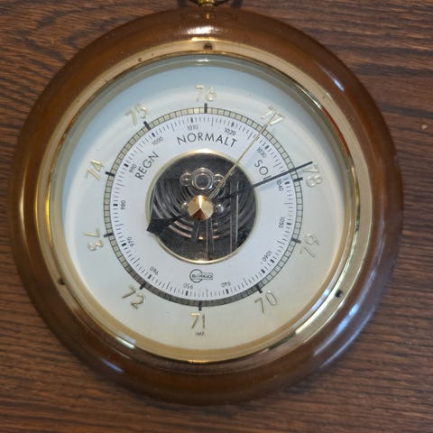 Barometer selges, usikker på hvor og når det er fra. Usikker på om det virker da det har ligget i en skuff. Dansk skrift på det.