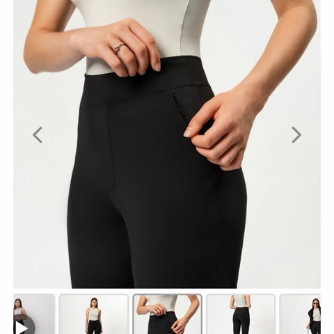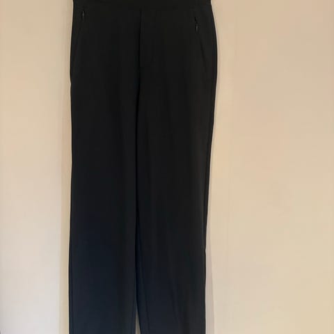 Ninepine Asana Relaxed Front Crease bukser i størrelse XL - 32.for kvinner. Buksene er svarte og laget av polyester og spandex. Designet har en avslappet passform med frontpress