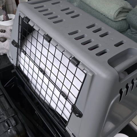 Dogbox Pro 3 Medium hundebur laget i aluminium med grå farge. Bur med mål 66 x 68 x 83,5 cm (høyde x bredde x dybde) og normal last på 40 kg. Designet for sikker transport av hunder i bil.