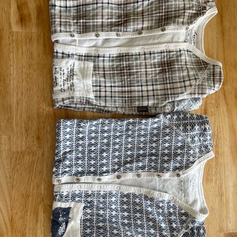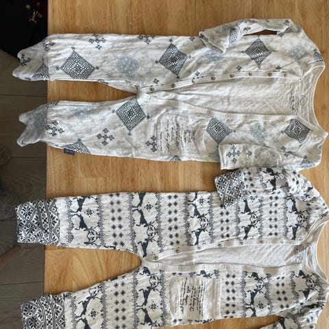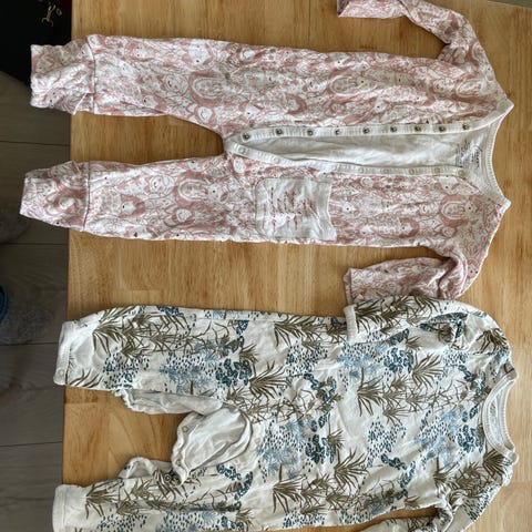 Myk og god pysj fra Lilleba. Str 74. Materiale er Bambus. På bena kan man velge om man vil brette over føttene til benet, eller la det være åpent for lufting av tæra på natta. Jeg er veldig fornøyd med kvaliteten på de pysjene og er et godt alternativ til de som ønsker en pustende pysj, som ikke er merinoull.