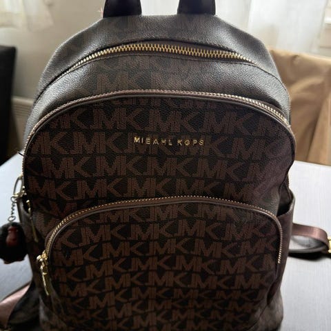 Michael Kors ryggsekk laget i semsket skinn, designet for dame. Sekken har flere lommer med glidelås og justerbare skulderstropper. Materialet kombinerer slitestyrke og stil, egnet for daglig bruk.