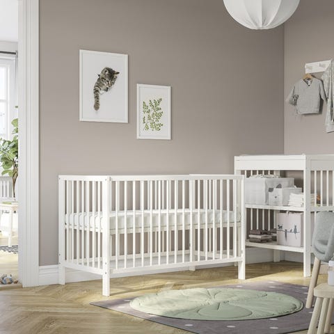 To stk fullt utstyrt IKEA sprinkelseng du kan ha til barna fra de er baby til 3-4 år. Sengene kan heves, og senkes - to forskjellige festepunkter for bunnen som gjør den praktisk. Ene siden kan tas av og det medfølger som avbildet sengehester til begge sengene.