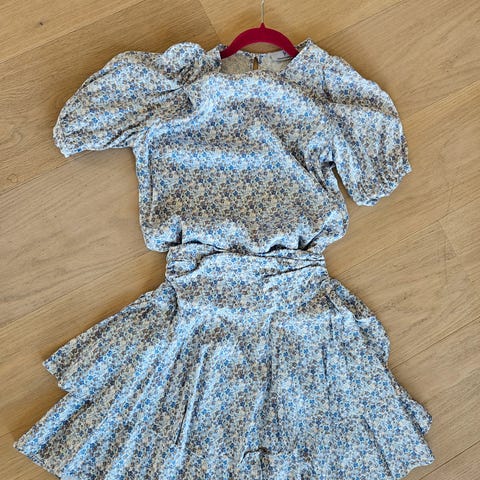 Jaffa Jacket og Barbie skirt fra Urban Pioneers. Jakke og skirt dekorert med vakre 3D-blomster. Jakken har lange ermer rund hals og lukkes med skjulte hemper.