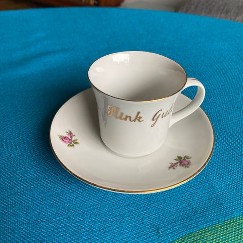 Snill pike - Figgjo barnekopp med skål. Koppen har to ulike fargerike motiver av barn. Skålen har et rillet mønster langs kanten.