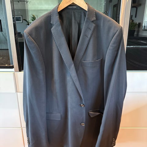 Hugo Boss ullblazer i grå farge, størrelse 48 for herre. Jakken har en klassisk passform og er laget av ullmateriale. Egnet for formelle og semi-formelle anledninger.