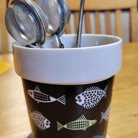kopp sett med blomsterdesign, laget av keramikk. Hver kopp har et håndtak og dekorative blomster med tekst på norsk. Passer til daglig bruk i kjøkken og til servering av varme drikker.