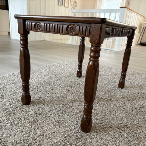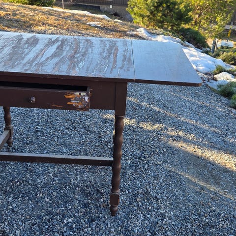 Eldre hyggelig bord for terrasse/hage e.l. Dekorativt og nostalgisk fasong/utseende og fint som blomsterbed på terrassen. Bordet er spikret sammen, men bør strammes til da det er litt såkalt «lealøst». Selges billig kr 130.-