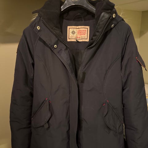 Jakken har slitesterkt polyester ytterstoff og er fylt med dun og fjær. Vaskes i vaskemaskin på 30 grader. Har både glidelås og knapper som gjør den god og varm på kalde dager. Utstyrt med fire ytterlommer og innerlomme for mobil. Den er 10 år gammel, men er lite brukt.