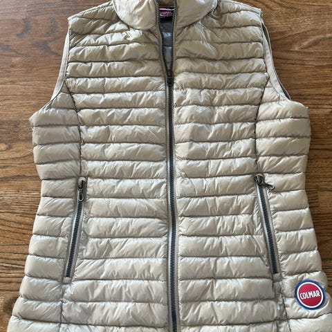 Glossy Womens Vest er en dunvest laget i resirkulert materiale. Vesten har bred krage og ribbestrikket elastisk belte i midjen. Colmar-logo foran på venstre side av vesten.
