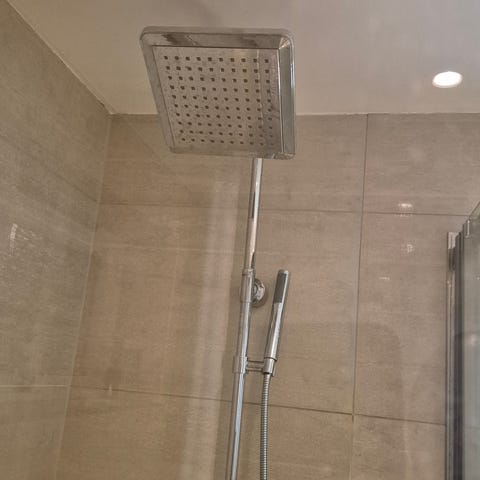 1 dusjsett med takdusj og vanlig dusj, fungerer greit, men bør renses for kalk i takdusj.
