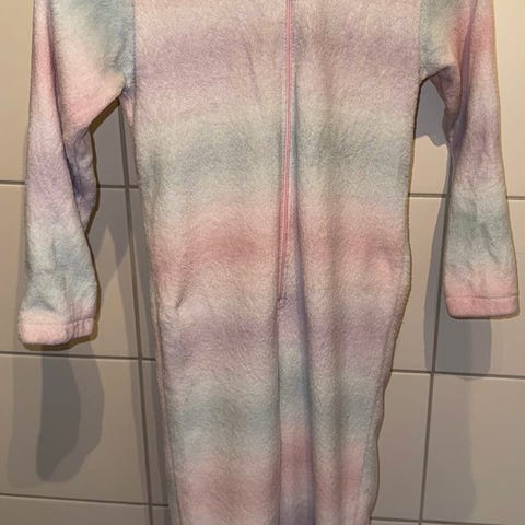 Pent brukt kosedress/onepice i myk og deilig fleece, str 7 år. Det perfekte koseplagget nå i kulda. Passer fra ca 116-122/128.