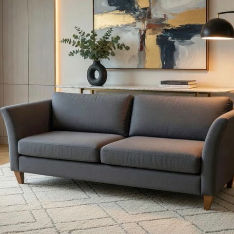 Sofa er 273cm lang og 90cm i bredde 64cm i høyde.