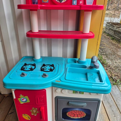 Godt brukt å sitter no rester fra klistremerker, går sikkert at få bort, annars helt å pent.