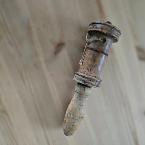 Saksen er formet som en trane fugl. Morsom liten sak.
